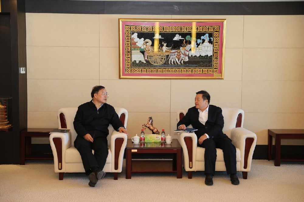 2024年11月29日,中国有色集团党委书记、董事长文岗在集团总部与来访的中国诚通党委书记、董事长奚正平一行举行会谈,双方就进一步深化合作进行深入交流。